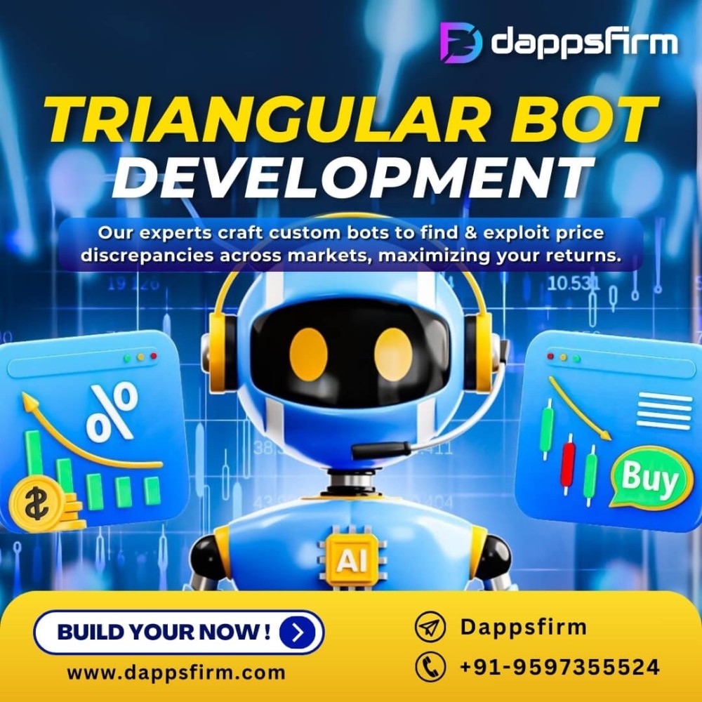 Triangular arbitrage involves trading three cryptocurrencies to exploit price discrepancies between them. It requires precise execution across multiple asset pairs. A triangular arbitrage bot automates this process, swiftly detecting and capitalizing on these price differences. Dappsfirm offers triangular arbitrage bot development services at minimal cost and quick launch, ensuring efficient and profitable trading in volatile markets.
