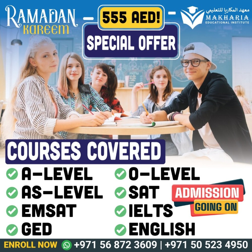 #RamadanOffer, #DiscountedCourses, #Alevel, #ASlevel, #EMSAT, #GED, #Olevel, #SAT, #IELTS, #EnglishCourse, #ExamPreparation,