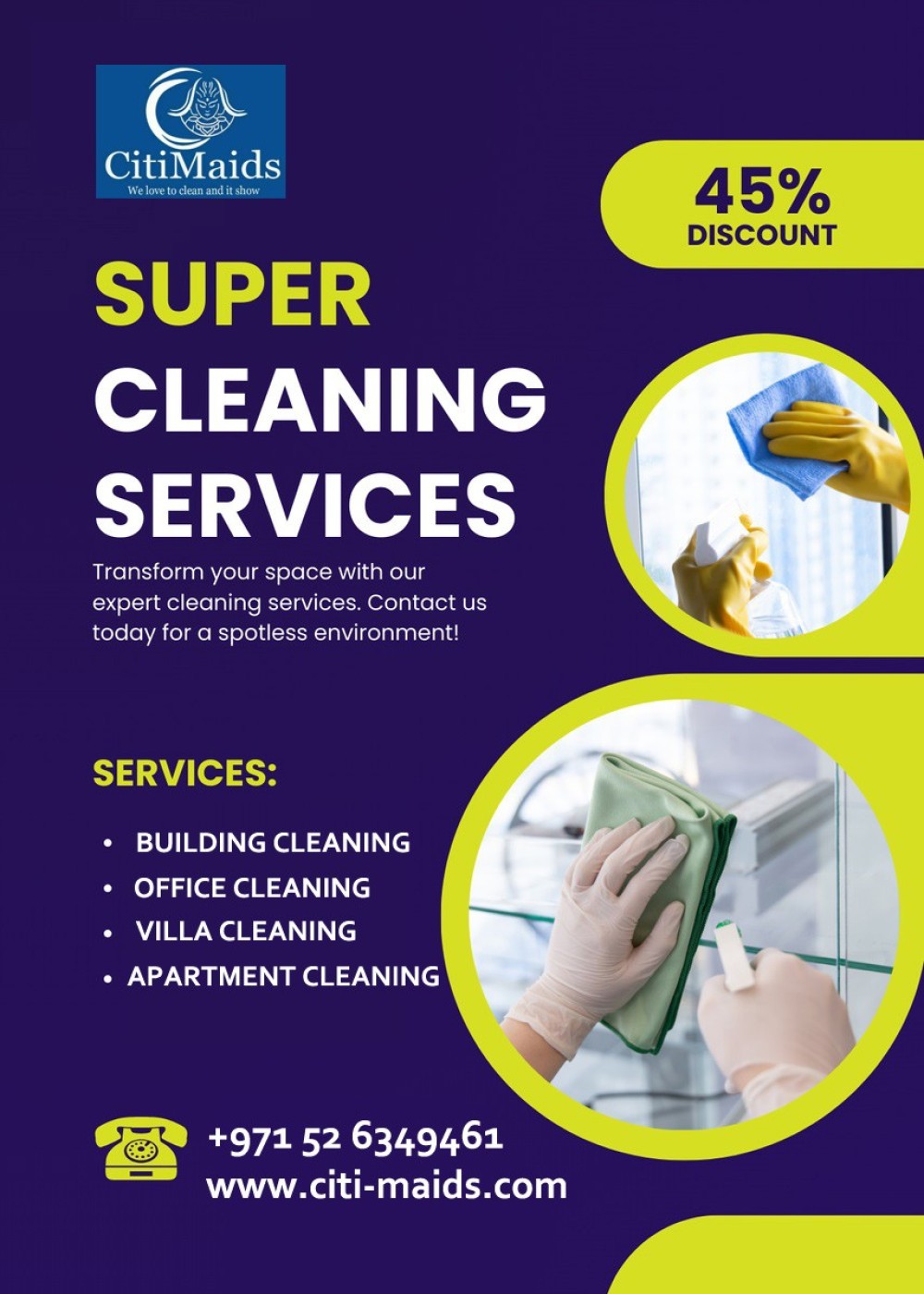 Looking for a top-quality cleaning service that can take care of your home or office? Look no further than Citi Maids Cleaning ! We're experts at providing top-notch cleaning services that will leave your space looking perfect. So whether you're looking for a one-time deep clean or regular cleaning service, we're the company for you. Contact us today to get started!Our specialized capabilities ensure priority service, tailored solutions, and a track record of excellence in delivering immaculate and well-maintained exteriors. Count on Citi Maids for your window and facade cleaning requirements, where quality and client satisfaction are our foremost priorities.