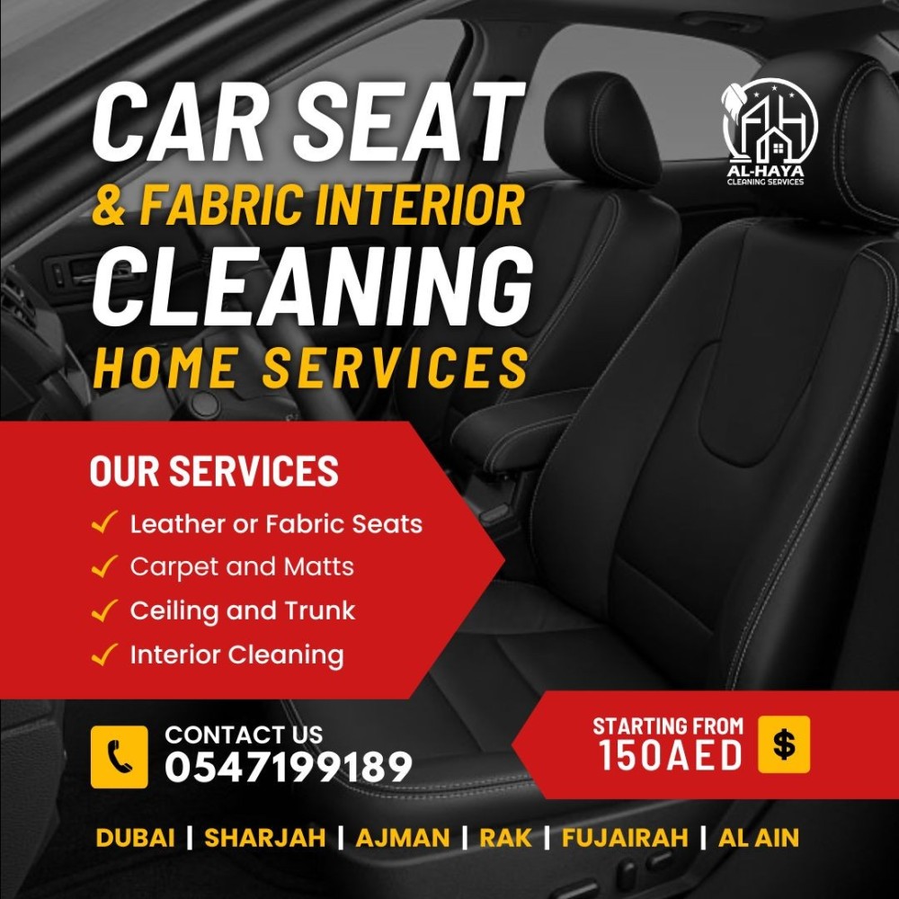 alhaya cleaning service is providing home services for car seats cleaning, car fabric interior cleaning. car seats cleaning is an important process that should be done regularly to keep your car seats looking and feeling their best.