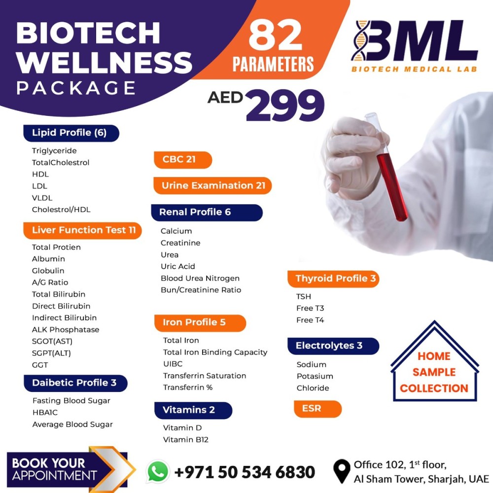 Discover Your Overall Health with BML's 82-Parameter Biotech Wellness Package - Only 299 AED