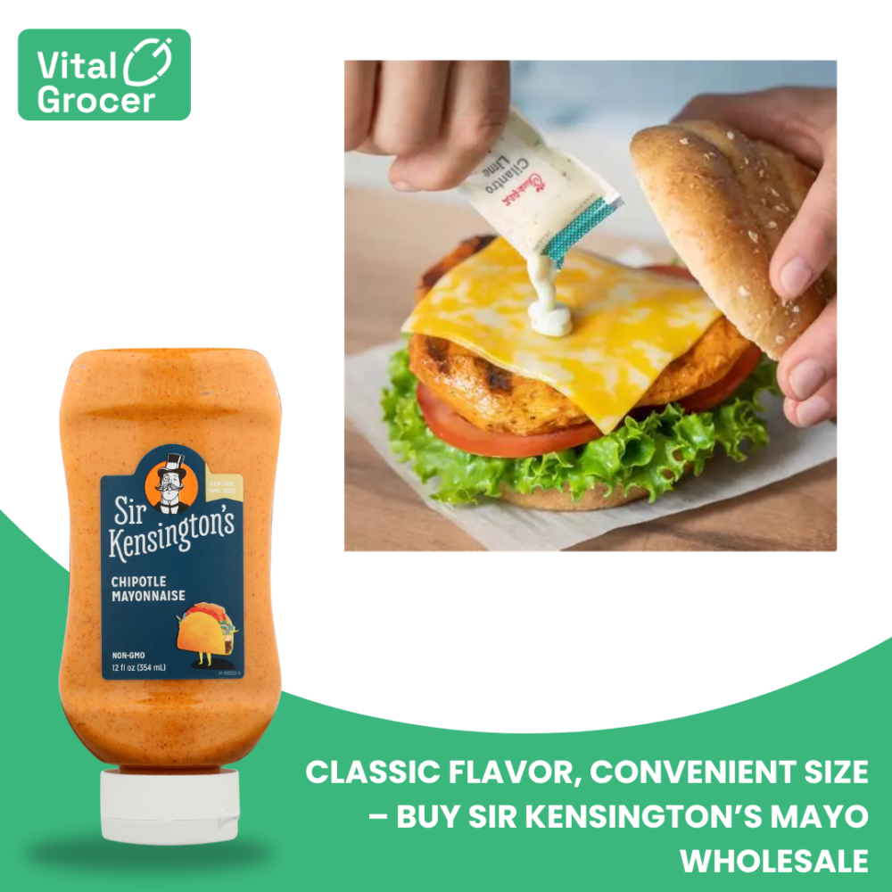 Sir Kensington’s mayo packets bulk wholesale is the ultimate choice for foodservice professionals, catering events, cafes, and restaurant chains. These 14ml classic mayo sachets offer unbeatable quality and convenience in a case of 600 – perfect for large-scale operations, takeaway counters, or gourmet sandwich shops. At Vital Grocer, we bring you premium condiments in bulk at competitive prices. Elevate your customer experience with Sir Kensington’s signature flavor, packed for freshness and easy serving.