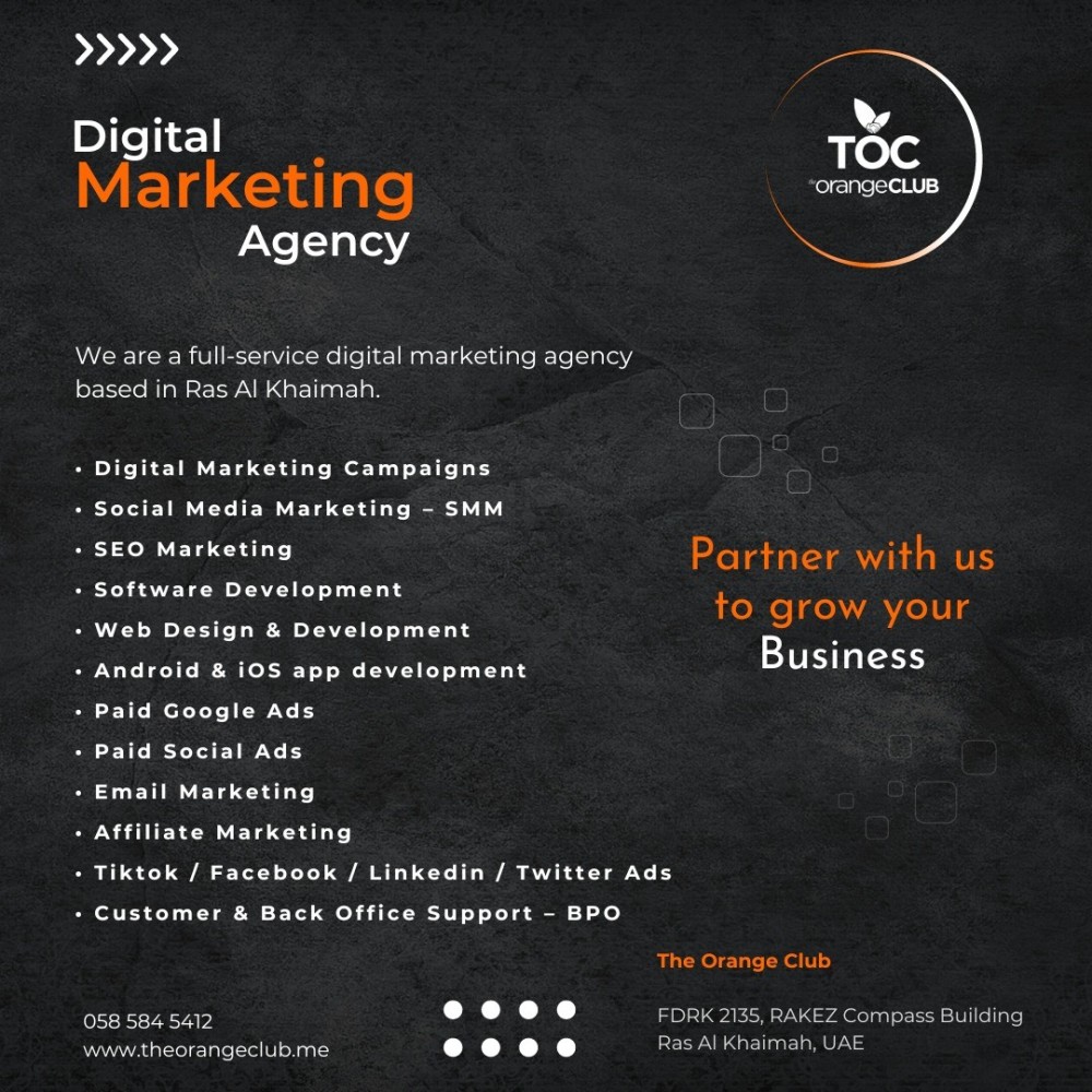 We are a full-service digital marketing agency based in Ras Al Khaimah. At The Orange Club, we are passionate about crafting cutting-edge digital strategies and delivering innovative marketing solutions to help businesses accelerate their growth and achieve their goals.