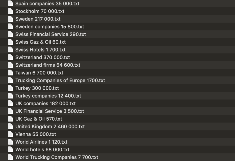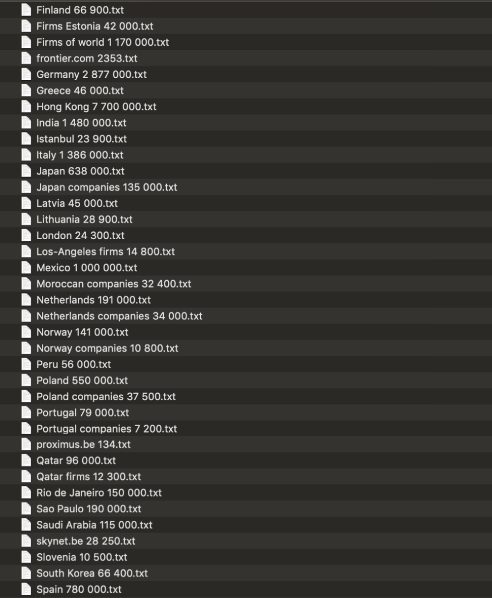 More of 60 million email addresses only for 0.037 BTC! Our email databases are collected solely from public sources using licensed software and in compliance with data protection laws, specifically for marketing purposes. We do not take responsibility for any misuse of these lists.