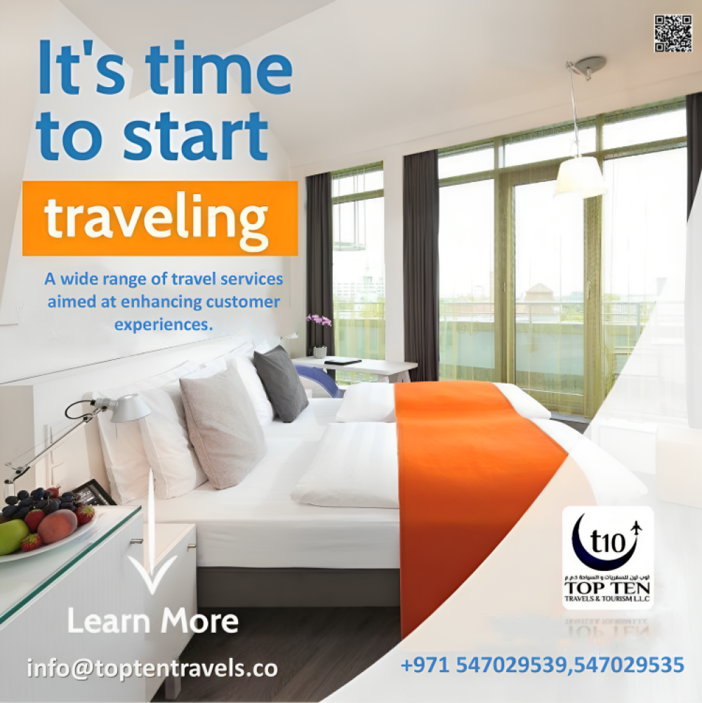All over the world is travel agency where you can buy airline tickets, room nights, tours, cruises and all-inclusive vacations. Topten Travels negotiate special deals with leading airlines, hotels, resorts and cruises the brands that you know and trust - to offer you amazing bargains. We are a privately held company and we have a small corporate center in Ajman, with five offices in three locations throughout the country. Contact number:+971547029539,65262338